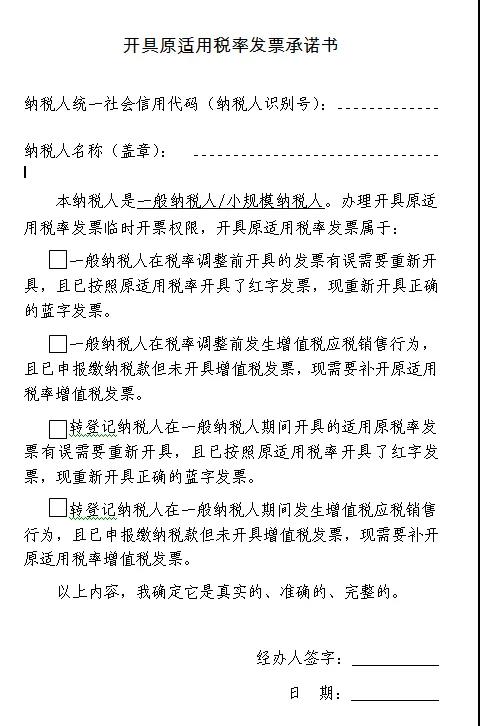 開(kāi)具原適用稅率發(fā)票承諾書(shū)