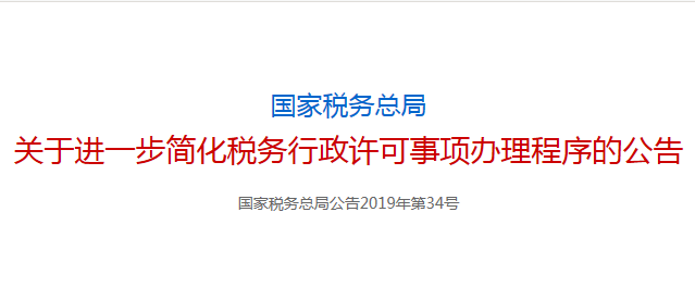 稅務(wù)總局發(fā)文進(jìn)一步簡化稅務(wù)行政許可事項辦理程序,12月1日起施行(2019-10-23)