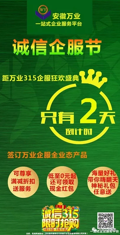 現(xiàn)為了響應(yīng)315誠信服務(wù)消費(fèi)者的號(hào)召,安徽萬業(yè)特推出315企服節(jié)盛典活動(dòng)。